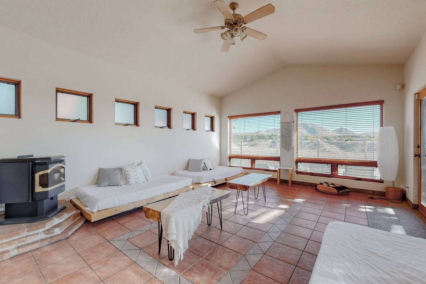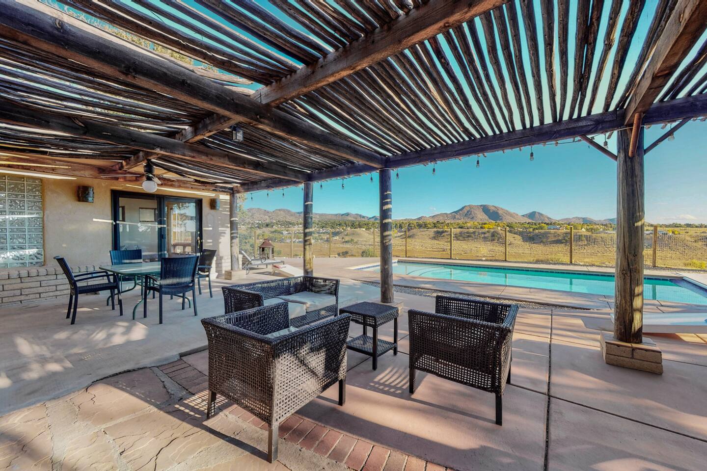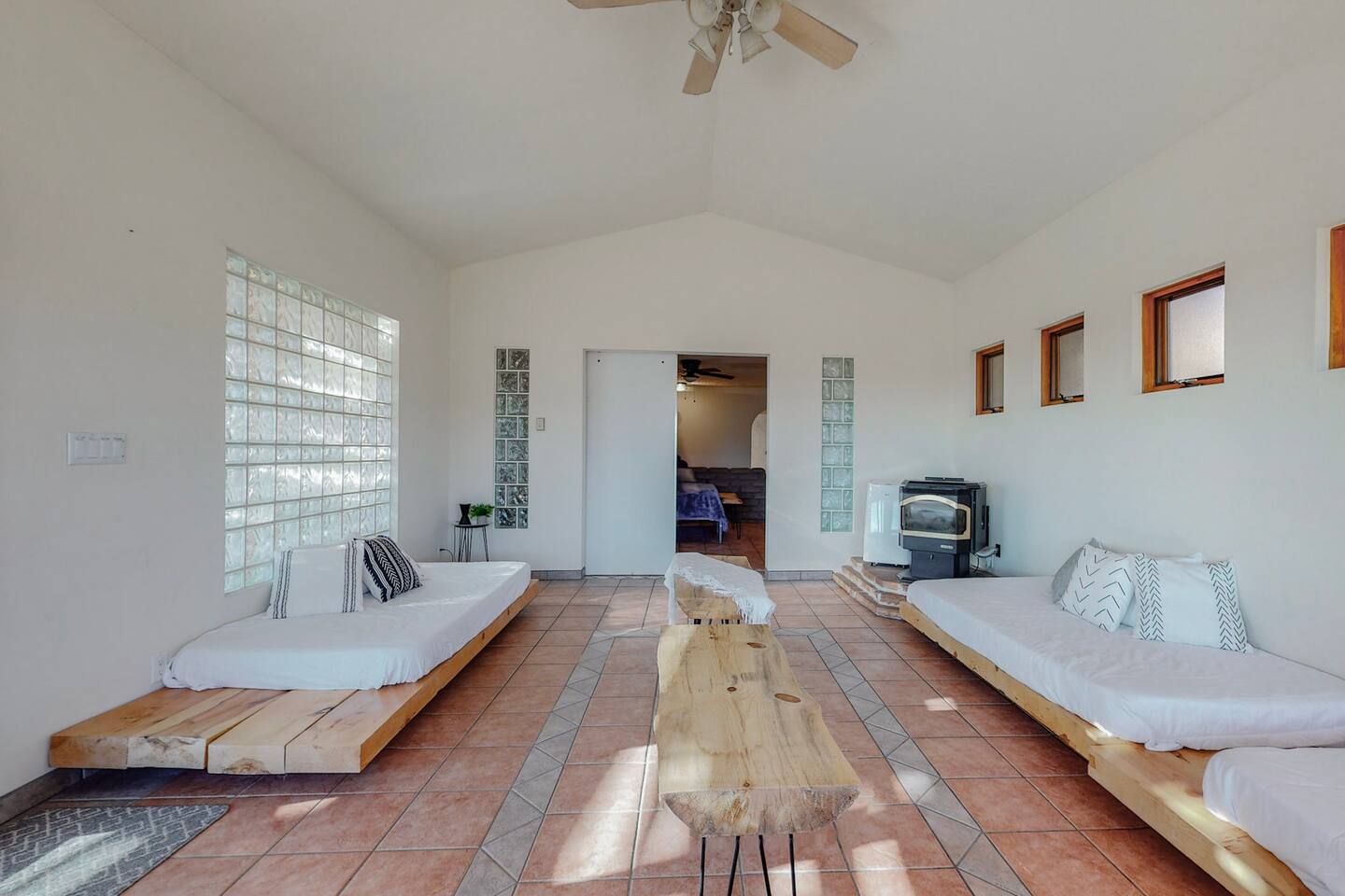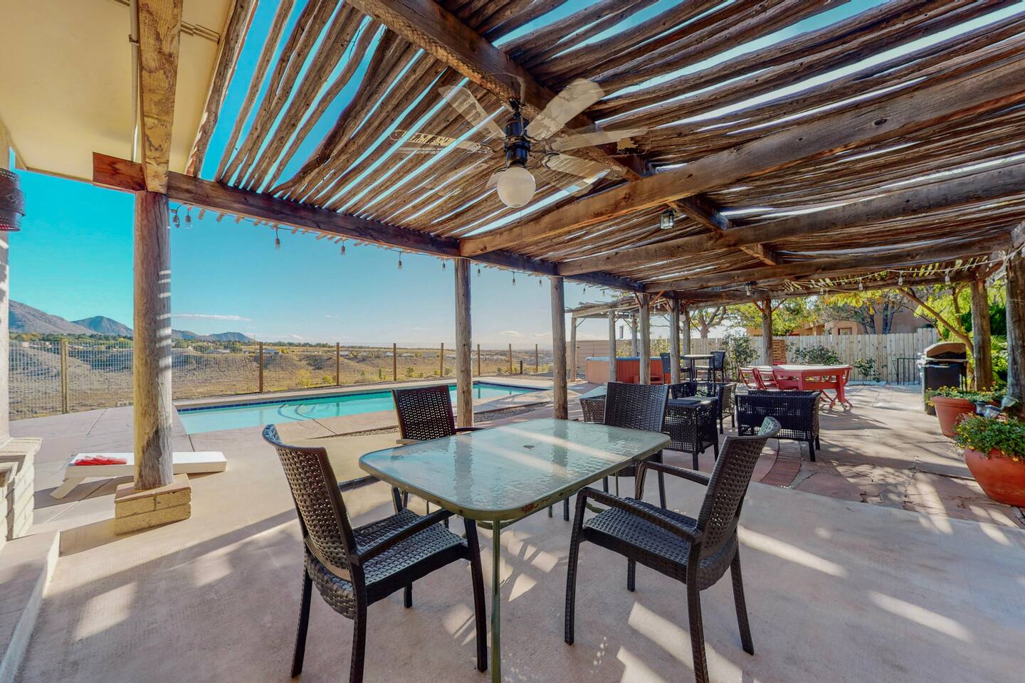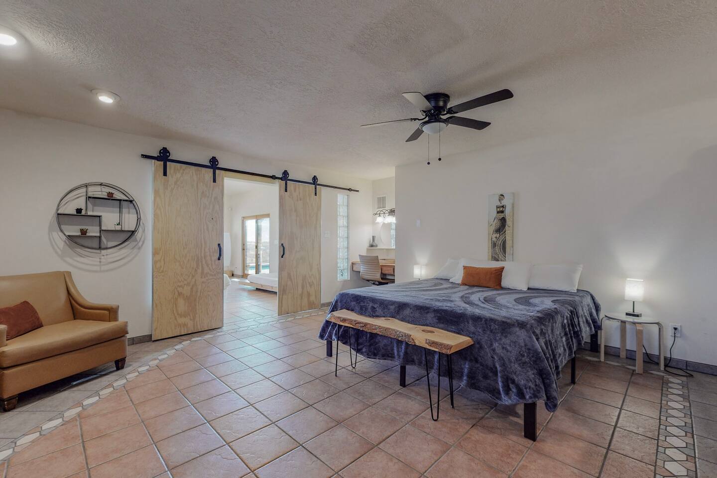 *If you don't see your dates available please message me to confirm availability, as it is subject to change day-to-day. We have a portfolio of vacation rental properties that are of similar size and have similar amenities.* A Modern Urban Retreat with plenty of room for the Entire Family or Multiple groups traveling together. The house has 2 lovely Family suites which are perfect for parents and children. 》The Master Family Suite has a master bathroom with a large Roman-Style soaking tub / Sauna area, a Master bedroom with a Califonia King bed, and the attached Master bedroom Lounge with 3 single day-beds. 》The other Family Suite a Califonia King bed and a Triple bunkbed. There are additional bedrooms and 3.5 Baths, New Full Kitchen, New Tempur-Pedic beds, new Keurig coffee maker, USB charging stations for your phones and tablets, Huge Common area with Custom Wood Dining Table 》Air Hockey Table, Game Room 》Granite Countertop Bar for hosting your large group. Captivating views of the Sandia Mountains, Breathtaking Open Skies, and Colorful Outdoor Living space with a comfortable Hot Tub. The unique backyard provides the perfect photo backdrop. Our Fabulous and Entertaining Backyard with a Fire Pit and a Propane Heaters to Keep Everyone Comfortable and Warm in the Lovely Cool Evenings. 》Plenty of outdoor seating, 》Gas Grill, and Smoker. Excellent Hiking and Biking Trails in the Sandia Mountains ONLY a few minutes from the house. Walking distance to a brand-new Icon Cinemas, Smith’s, and Sprouts grocery stores. Very close to the I-40 Freeway with easy access to many other restaurants and shopping. Only 15 mins from Airport or East Mountains. 10 minutes to Nob Hill, Downtown, Old Town ABQ, Uptown! Utilities and household need all supplied, FAST Wi-Fi (105 Mbps), Netflix, Amazon Prime, HBO, Sling, Local and Hispanic Channels included. Don’t Miss Out on Exploring through ABQ’s Museums, Microbreweries, famous spots along and around Historic Route 66 (Nob Hill, Downtown, Old Town, Uptown), even take a trip down the Breaking Bad Series memory lane and tourists’ sites. Not the Adventure type, stay in and entertain at home, prepare a meal for your family and friends, dine al fresco and enjoy the Hot tub and Sandia Views. Or both! Our spacious house sleeps 16+ with a hot tub, DON’T MISS OUT on a place where You Can Truly have it ALL! ~~~Enhanced Guest Experience with Luxury Amenities & Services~~~ After booking our home, we can arrange any of these add-on services. Want something else, please let us know? ~~~Enhanced Guest Experience with Luxury Amenities & Services~~~ After booking our home, we can arrange any of these add-on services. Want something else, please let us know? → Childcare • Providing In-Home Child Care & Certified Baby-Sitting Services. Certified in first aid → Senior Care • In-Home Personal Care Services for you and your loved ones. → Mid-Stay Cleaning • Clean your home in the middle of your stay. → Family Gear (High Chair, Booster Seats, Pack 'n Play, Changing Table, Child Safety Seat, Strollers, etc.) • High Chair, Booster Seats, Pack 'n Play, Changing Table, Child Safety Seat, Strollers, etc. → Pets: We are children and dog-friendly, sorry no cats or other animals. You must inform the owner if you are bringing a pet to the house. There is a Pet Fee of $200 for the entire stay for up to 2 dogs, each additional dog is $100 There will be an additional $200 for pets that haven’t been pre‐authorized by the owner before check-in. → Winter Months - The pool is not heated during the months of Nov 1st through March 31st. If you would like to have the pool heated during the winter there is an additional fee. SPECIALIZING IN SPACIOUS & MODERN VACATION RENTALS, CORPORATE HOUSING, SHORT-TERM RENTALS, & TEMPORARY HOUSING Covid 19 UPDATE!!!: Hello, We look forward to your upcoming stay. We’re always concerned about our guest's health as well as their safety—especially with the news surrounding Coronavirus (COVID-19). We are intent on being as proactive as possible to create safe and clean environments for our guests. The entire house is regularly cleaned and disinfected, using hospital-grade cleaners to dust and disinfect handles, restrooms, tables, chairs, etc. Extra measures we’ve implemented are an increase to our cleaning schedule and scope as well as the use of a commercial Ozone Generator in order to increase surface area cleaning covering harder to reach areas with greater effectiveness and efficiency. Bleach and other disinfected cleaners available during your stay. If you would like more details, please contact us and we will be more then happy to chat about your visit and upcoming stay. We ask that all guests please inform us if they feel ill upon checking-in and checking-out. This doesn’t negatively impact our guests in any way. We just want to ensure that that our cleaning crew is aware, and they take extra steps in their protection and cleaning. You can be confident that these are the steps we’re taking to prevent the spread of germs. Please let me know if you have any questions. Safe Travels, Piru Manors Guests are expected to read & be willing to honor House Rules. No gatherings/parties allowed, only booked guests can be there at any time (unless discussed/approved and additional fees paid in advance). Additional security deposit required for every booking per House Rules; booking implies agreement to pay deposit and honor rules. Unpaid deposit means no entry.