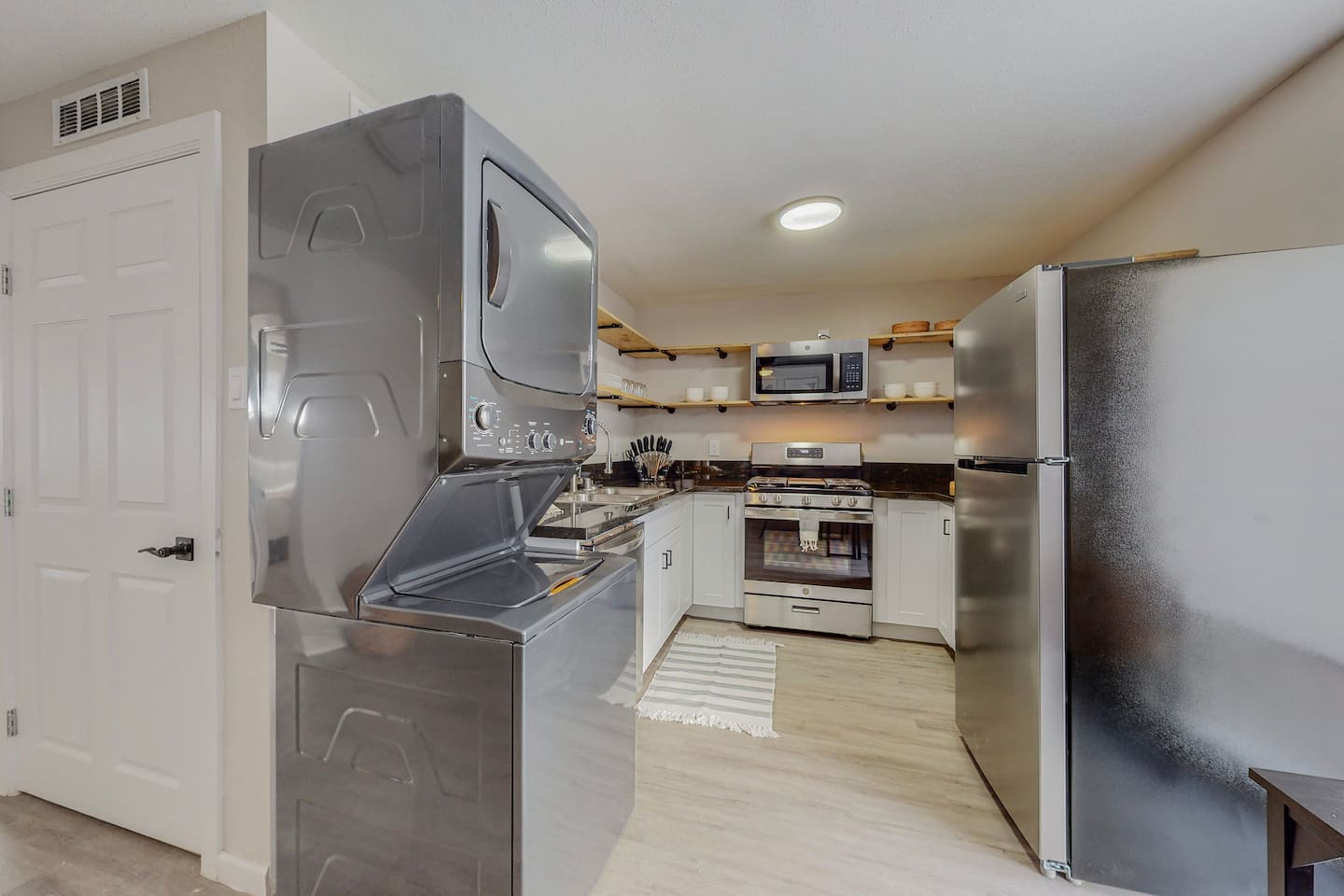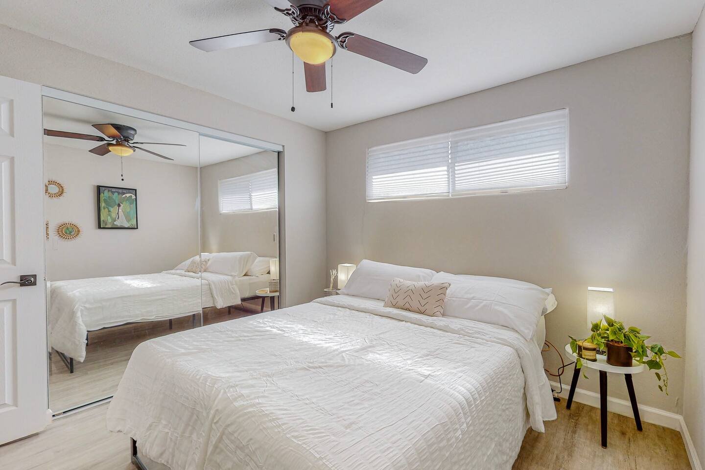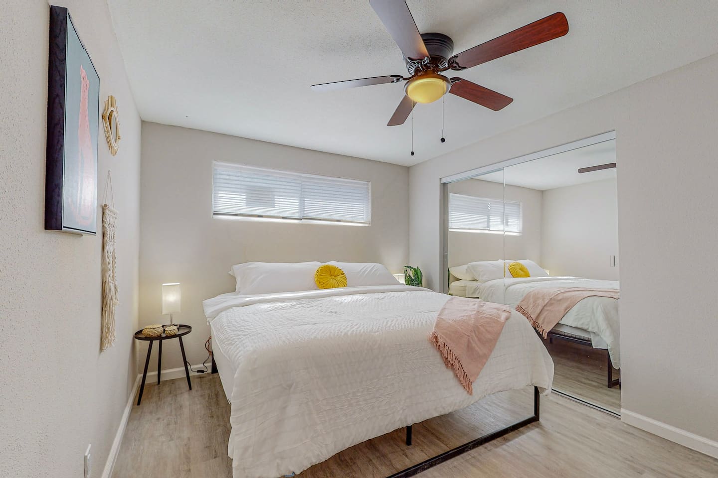 Newly remodeled, fully furnished apartment with private courtyards Dog-friendly with onsite dog run and bath Close to UNM, UNMH, and Presbyterian Hospital Near Albuquerque's top breweries and restaurants Smart TV with Netflix, Hulu, Disney +, HBO, Sling, Amazon Prime, And Local Channels Shared yard with fire pit and grills Master bedroom with ensuite bathroom Tempur-Pedic bed Fully equipped kitchen with granite countertops Extremely safe neighborhood FREE onsite secured parking FREE in-unit washer and dryer FREE fast WiFi