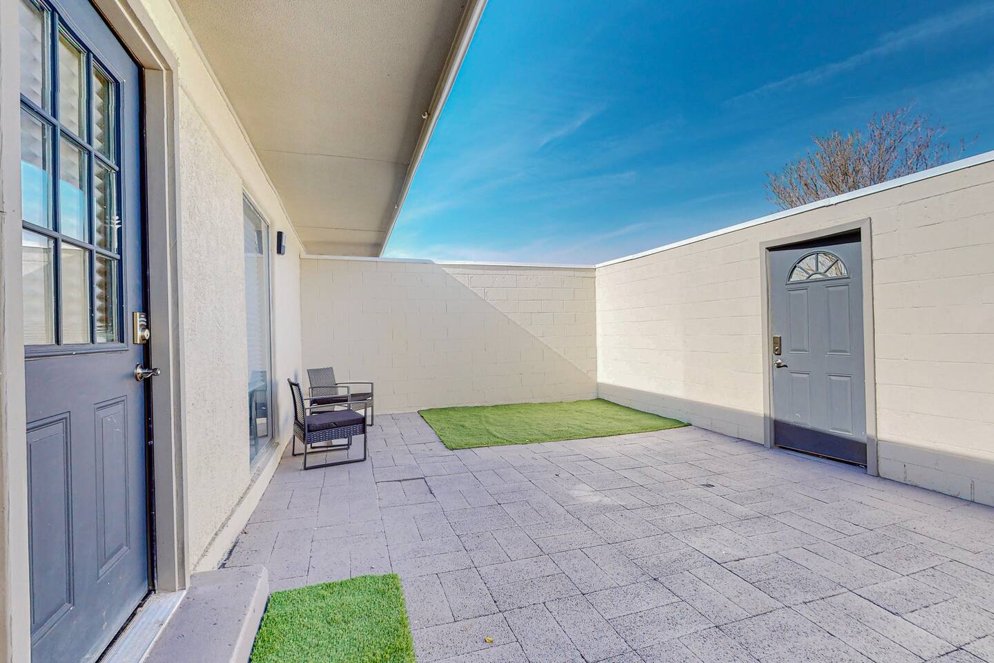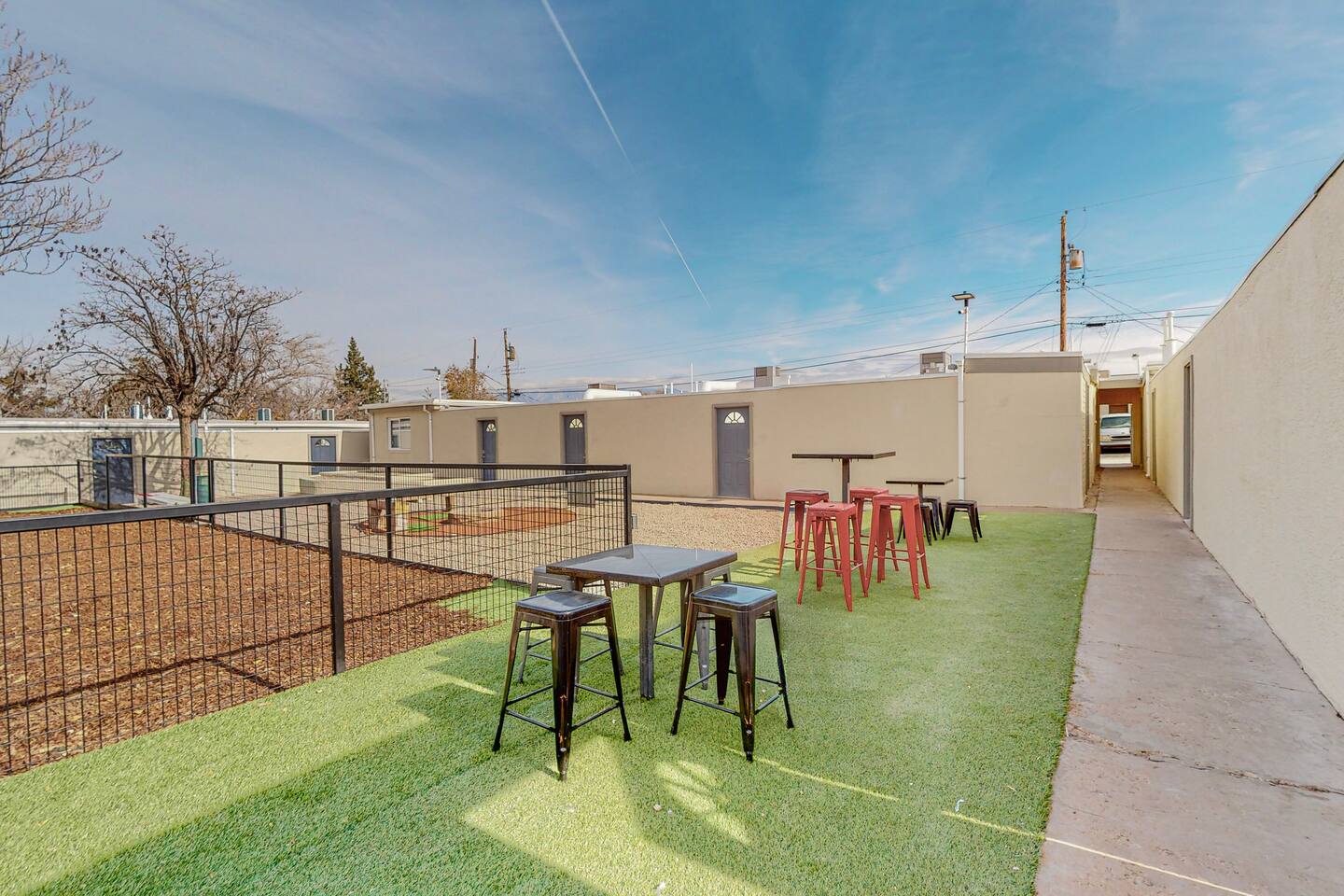 Newly Remolded Apartment with Private Courtyards Fully Furnished Dog-friendly Onsite Dog Run and Bath Located near UNM, UNMH, and Presbyterian Hospital Near some of the best Breweries and Restaurants in Albuquerque Smart TV, NETFLIX, Hulu, Disney +, HBO, Sling, Amazon Prime, And Local Channels Common yard w/ fire pit and grills Master bedroom with ensuite bathroom Tempur-Pedic bed Fully equipped kitchen w/ granite countertops Extremely safe neighborhood FREE Onsite secured parking FREE Washer + Dryer in unit FREE utilities FREE FAST Wifi