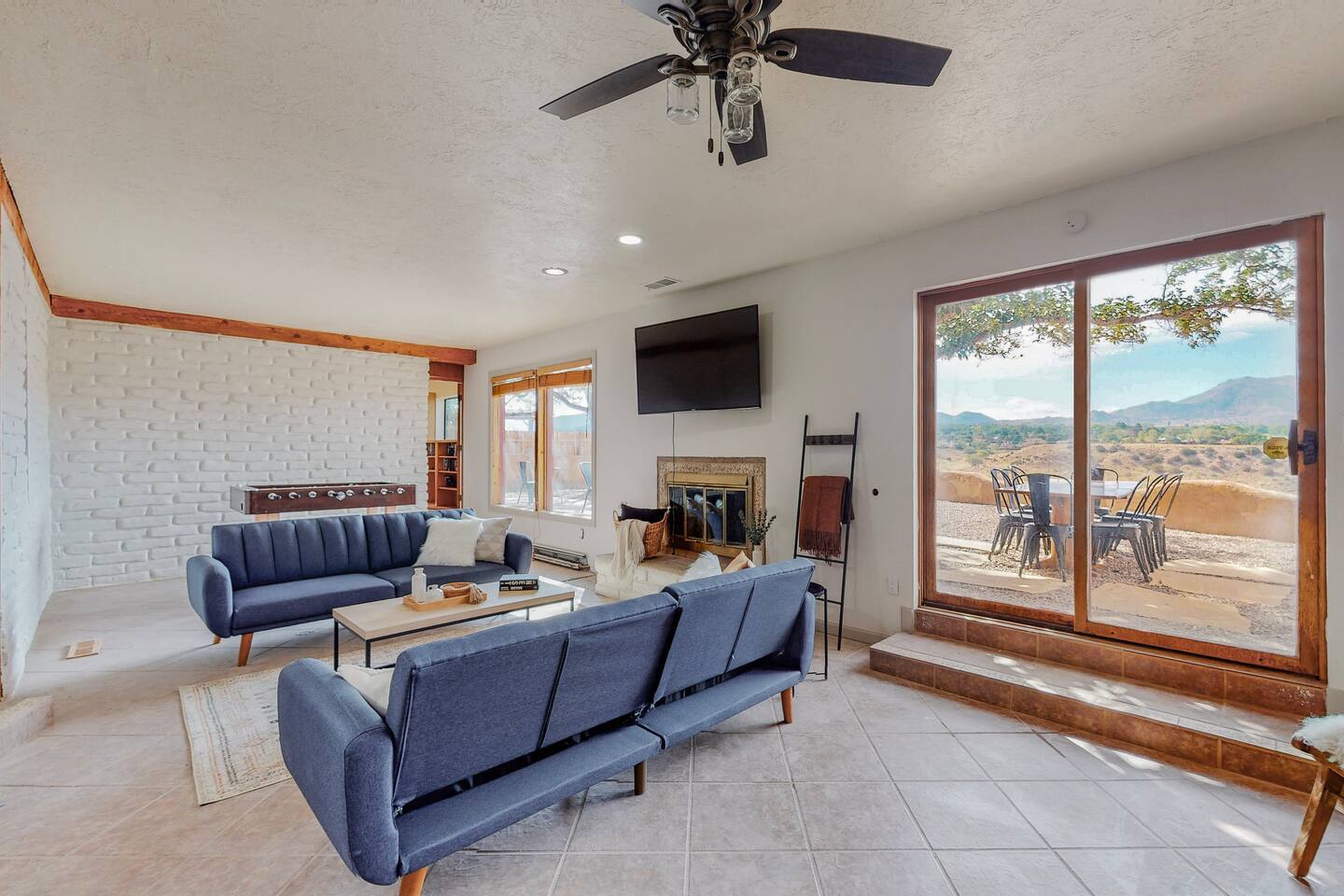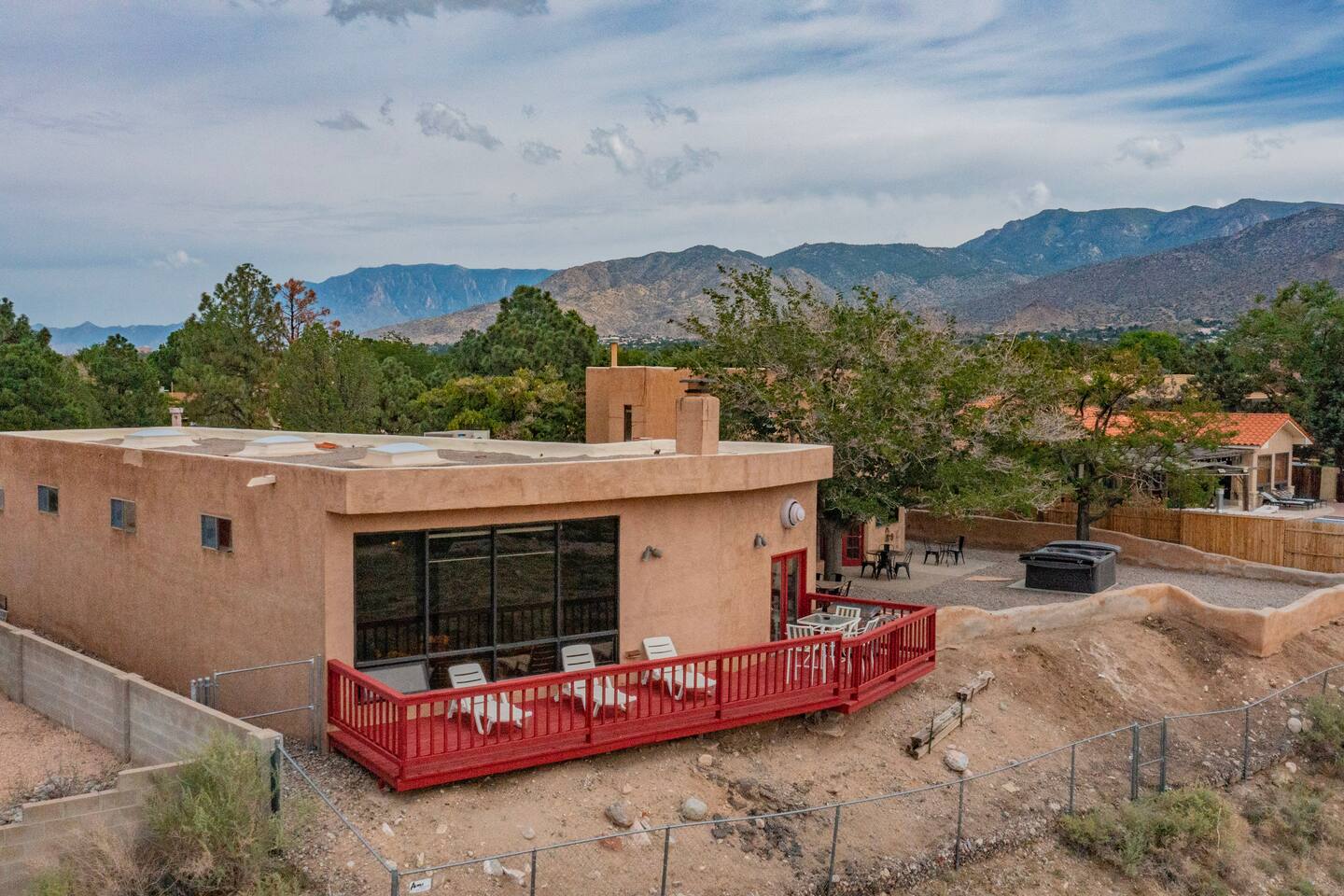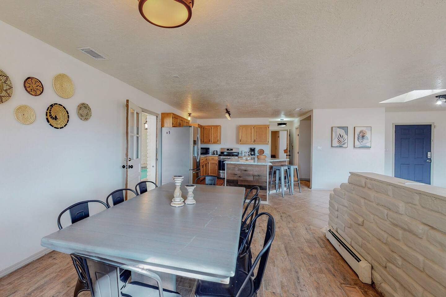 *If you don't see your dates available please message me to confirm availability, as it is subject to change day to day. We have a portfolio of vacation rental properties in ABQ that are a similar size and have similar amenities.* 》Upstairs: Master bedroom with ensuite bathroom including jetted/ jacuzzi tub 》Downstairs: 3 Bedrooms, 3 baths, kitchen, common area, foosball table 》Indoor Heated Pool and Sauna Outdoor: Hot Tub, fire pits, gas and charcoal grill, brick pizza oven, stovetop, refrigerator, seating This amazing house also features an Indoor Heated Pool. Captivating views of the Sandia Mountains, Breathtaking Open Skies, and Colorful Outdoor Living space with a comfortable Hot Tub. The unique backyard provides the perfect photo backdrop. Excellent Hiking and Biking Trails in the Sandia Mountains are ONLY a few minutes from the house. Walking distance to brand-new Icon Cinemas, Smith’s, and Sprouts grocery stores. Very close to the I-40 Freeway with easy access to many other restaurants and shopping. Only 15 mins from Airport or East Mountains. 10 minutes to Nob Hill, Downtown, Old Town ABQ, Uptown! Utilities and household needs are all supplied, FAST Wi-Fi (105 Mbps), Netflix, Amazon Prime, HBO, Sling, and Local and Hispanic Channels included. Don’t Miss Out on Exploring ABQ’s Museums, Microbreweries, and famous spots along and around Historic Route 66 (Nob Hill, Downtown, Old Town, Uptown), even take a trip down the Breaking Bad Series memory lane and tourists’ sites. Not the Adventure type, stay in and entertain at home, prepare a meal for your family and friends, dine al fresco and enjoy the Pool, Hot tub and Mountain Views. Or both! Our spacious house sleeps 16+ with a hot tub, DON’T MISS OUT on a place where You Can Truly have it ALL! ~~~Enhanced Guest Experience with Luxury Amenities & Services~~~ After booking our home, we can arrange any of these add-on services. Want something else, please let us know. 》Childcare • Providing In-Home Child Care & Certified Baby-Sitting Services. Certified in first aid 》Senior Care • In-Home Personal Care Services for you and your loved ones. 》Mid-Stay Cleaning • Clean your home in the middle of your stay. 》Family Gear (High Chair, Booster Seats, Pack 'n Play, Changing Table, Child Safety Seat, Strollers, etc.) - High Chair, Booster Seats, Pack 'n Play, Changing Table, Child Safety Seat, Strollers, etc. 》Pets: We are children and dog-friendly, sorry no cats or other animals. You must inform the owner if you are bringing a pet to the house. There is a Pet Fee of $200 for the entire stay for up to 2 dogs, each additional dog is $100 There will be an additional $200 for pets that haven’t been pre‐authorized by the owner before check-in. 》Winter Months - The pool is not heated during the months of Nov 1st through March 31st. If you would like to have the pool heated during the winter there is an additional fee. SPECIALIZING IN SPACIOUS & MODERN VACATION RENTALS, CORPORATE HOUSING, SHORT-TERM RENTALS, & TEMPORARY HOUSING