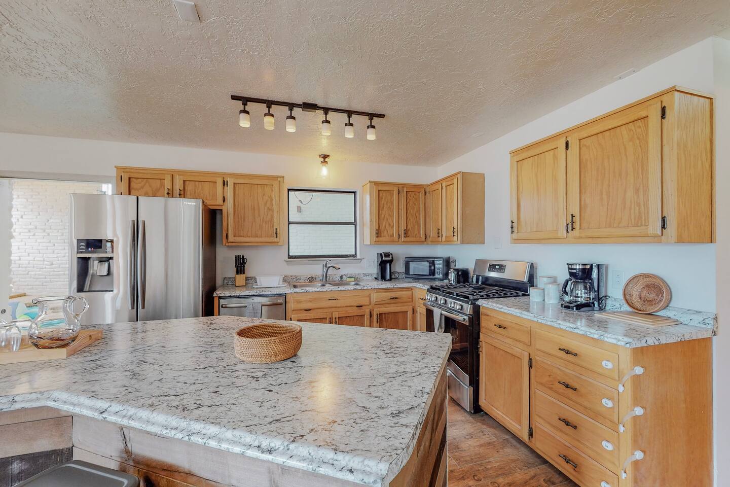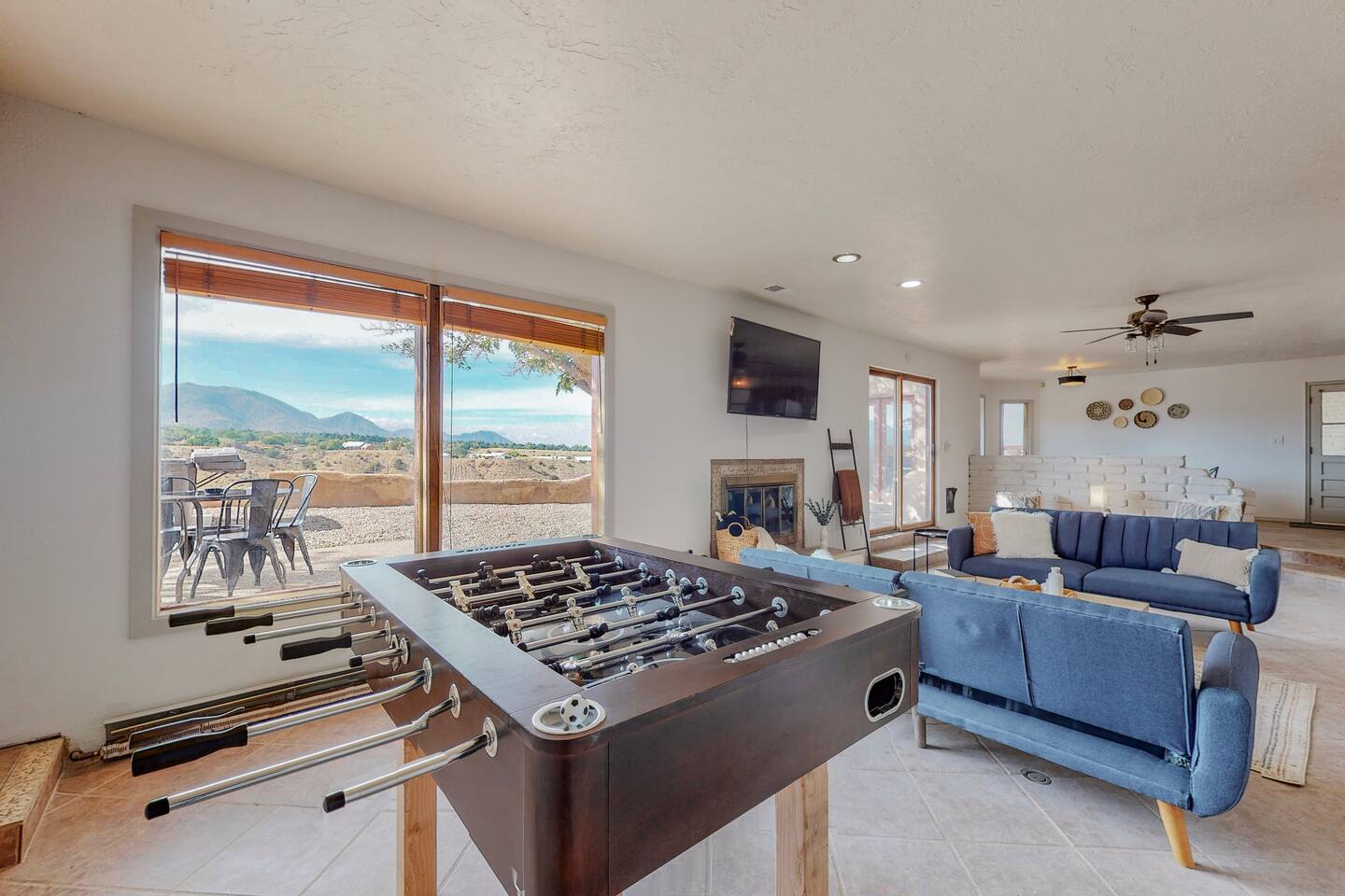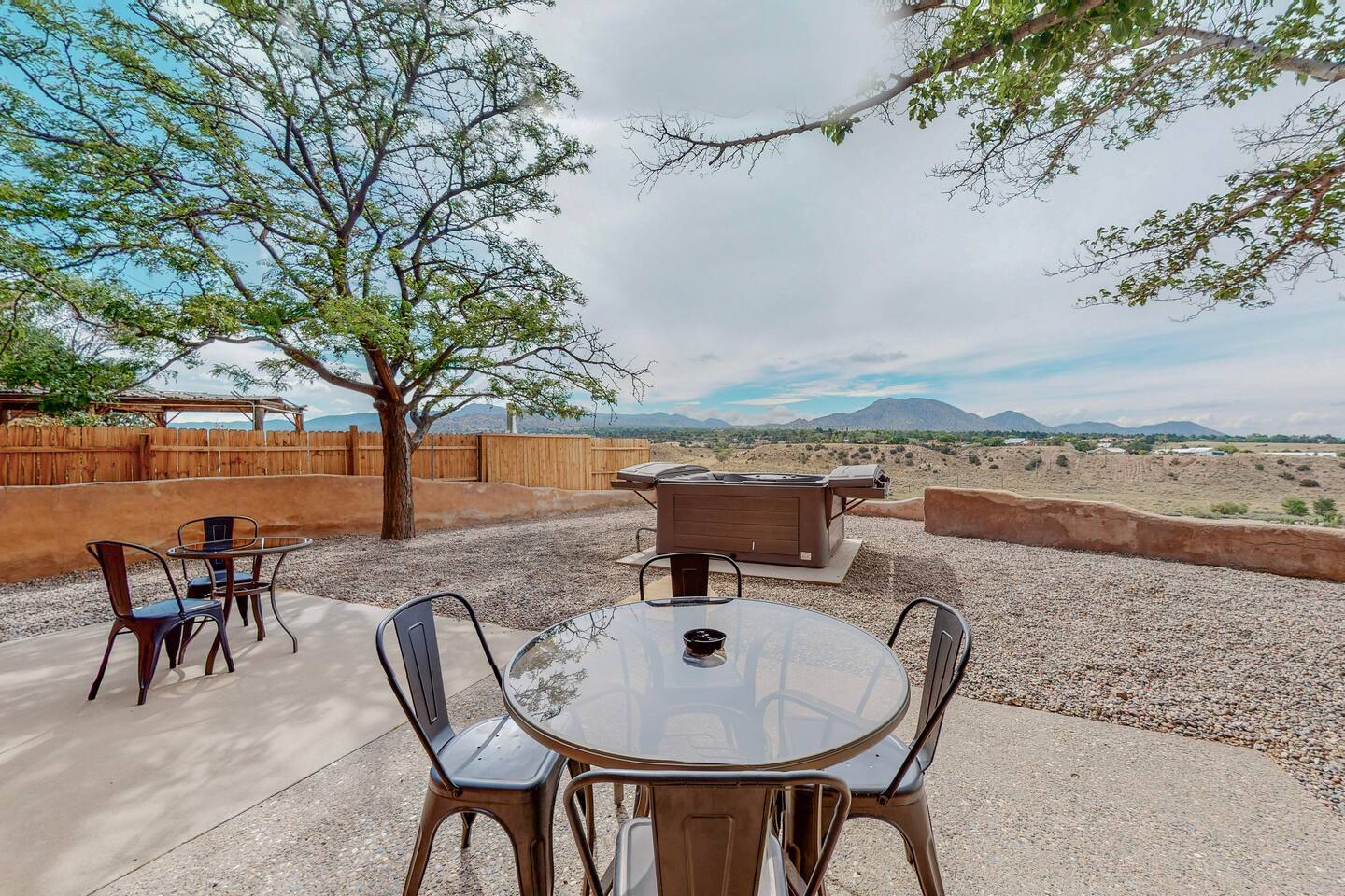 *If you don't see your dates available please message me to confirm availability, as it is subject to change day to day. We have a portfolio of vacation rental properties in ABQ that are a similar size and have similar amenities.* 》Upstairs: Master bedroom with ensuite bathroom including jetted/ jacuzzi tub 》Downstairs: 3 Bedrooms, 3 baths, kitchen, common area, foosball table 》Indoor Heated Pool and Sauna Outdoor: Hot Tub, fire pits, gas and charcoal grill, brick pizza oven, stovetop, refrigerator, seating This amazing house also features an Indoor Heated Pool. Captivating views of the Sandia Mountains, Breathtaking Open Skies, and Colorful Outdoor Living space with a comfortable Hot Tub. The unique backyard provides the perfect photo backdrop. Excellent Hiking and Biking Trails in the Sandia Mountains are ONLY a few minutes from the house. Walking distance to brand-new Icon Cinemas, Smith’s, and Sprouts grocery stores. Very close to the I-40 Freeway with easy access to many other restaurants and shopping. Only 15 mins from Airport or East Mountains. 10 minutes to Nob Hill, Downtown, Old Town ABQ, Uptown! Utilities and household needs are all supplied, FAST Wi-Fi (105 Mbps), Netflix, Amazon Prime, HBO, Sling, and Local and Hispanic Channels included. Don’t Miss Out on Exploring ABQ’s Museums, Microbreweries, and famous spots along and around Historic Route 66 (Nob Hill, Downtown, Old Town, Uptown), even take a trip down the Breaking Bad Series memory lane and tourists’ sites. Not the Adventure type, stay in and entertain at home, prepare a meal for your family and friends, dine al fresco and enjoy the Pool, Hot tub and Mountain Views. Or both! Our spacious house sleeps 16+ with a hot tub, DON’T MISS OUT on a place where You Can Truly have it ALL! ~~~Enhanced Guest Experience with Luxury Amenities & Services~~~ After booking our home, we can arrange any of these add-on services. Want something else, please let us know. 》Childcare • Providing In-Home Child Care & Certified Baby-Sitting Services. Certified in first aid 》Senior Care • In-Home Personal Care Services for you and your loved ones. 》Mid-Stay Cleaning • Clean your home in the middle of your stay. 》Family Gear (High Chair, Booster Seats, Pack 'n Play, Changing Table, Child Safety Seat, Strollers, etc.) - High Chair, Booster Seats, Pack 'n Play, Changing Table, Child Safety Seat, Strollers, etc. 》Pets: We are children and dog-friendly, sorry no cats or other animals. You must inform the owner if you are bringing a pet to the house. There is a Pet Fee of $200 for the entire stay for up to 2 dogs, each additional dog is $100 There will be an additional $200 for pets that haven’t been pre‐authorized by the owner before check-in. 》Winter Months - The pool is not heated during the months of Nov 1st through March 31st. If you would like to have the pool heated during the winter there is an additional fee. SPECIALIZING IN SPACIOUS & MODERN VACATION RENTALS, CORPORATE HOUSING, SHORT-TERM RENTALS, & TEMPORARY HOUSING