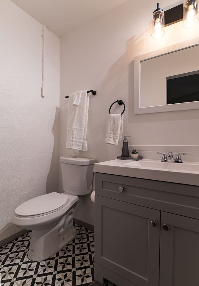 Luxury remodeled small house in NOB HILL/Route 66 Just blocks from UNM, UNMH, and Presbyterian Hospital Ultra-fast WiFi (200 Mbps) Walk to Albuquerque's top breweries and restaurants Smart TV with Disney+, Hulu, Netflix, HBO, Amazon Prime, and Local Channels Shared backyard with fire pit and grills Master bedroom with ensuite bathroom Fully equipped kitchen with granite countertops Located in an extremely safe neighborhood FREE secured parking onsite FREE onsite washer and dryer
