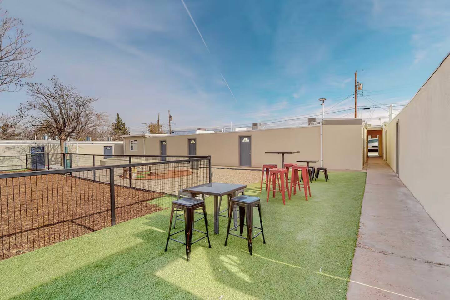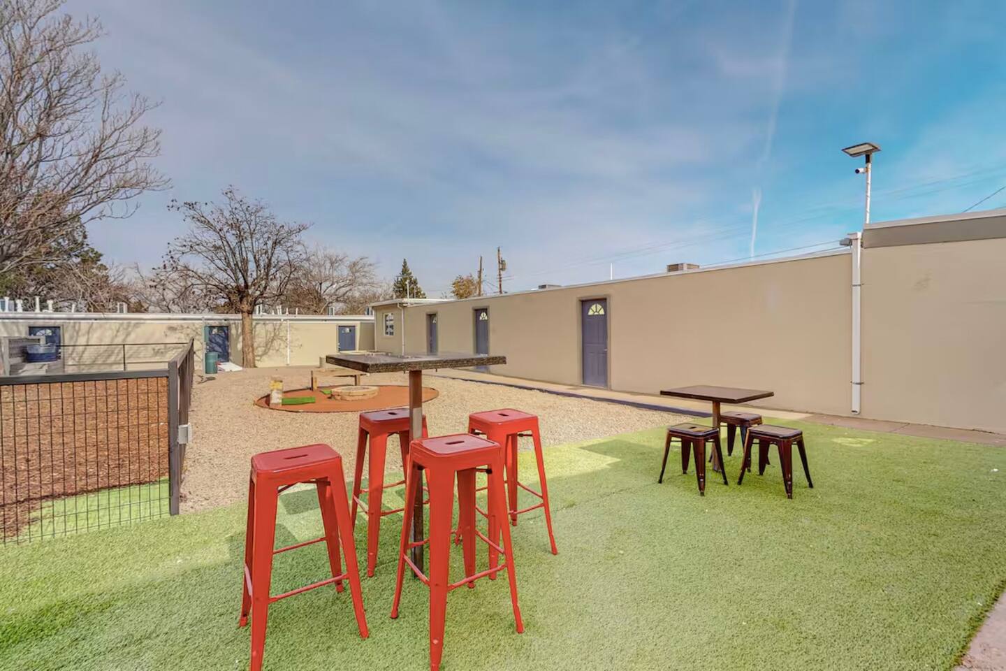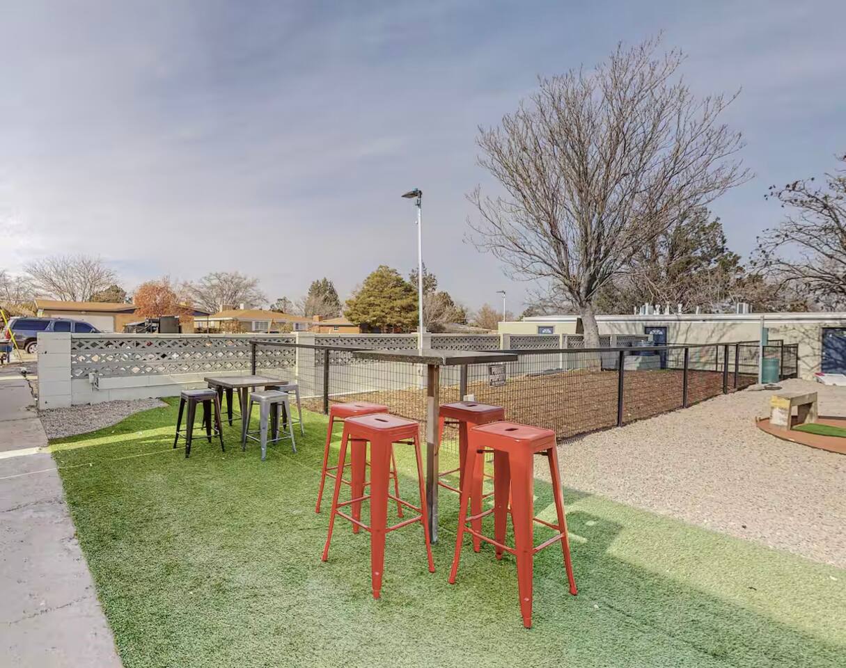 Newly remodeled, fully furnished apartment with private courtyards Dog-friendly, featuring an onsite dog run and bath Close to UNM, UNMH, and Presbyterian Hospital Walk to Albuquerque’s best breweries and restaurants Smart TV Shared yard with a fire pit and grills High-speed WiFi Master bedroom with an ensuite bathroom Tempur-Pedic Fully equipped kitchen with granite countertops Located in an extremely safe neighborhood FREE secured parking onsite Washer and dryer in the unit