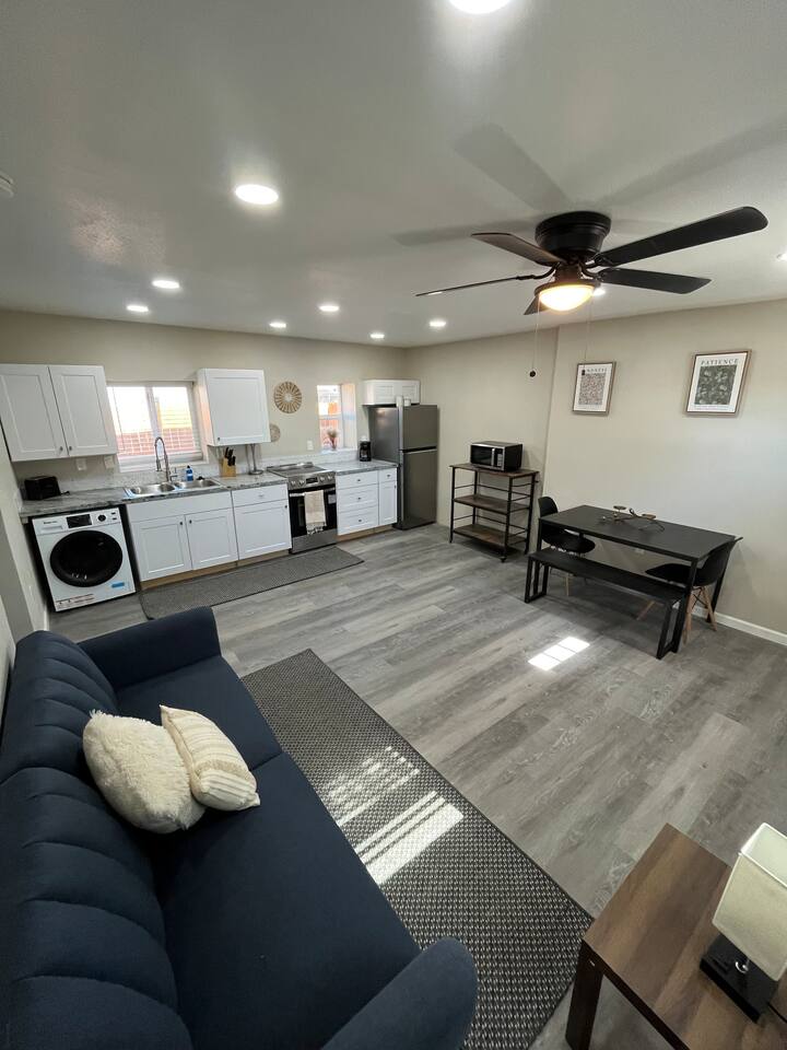 Newly renovated apartment in central Albuquerque Prime location near Old Town, Downtown, UNM, UNMH, and Presbyterian Hospital Ultra-fast WiFi Walk to the finest breweries and dining spots in Albuquerque Master bedroom with a luxurious king-sized bed Modern kitchen with granite countertops, fully equipped Secure and safe neighborhood Complimentary secured parking onsite Free in-unit washer and dryer Air conditioning throughout Dog-friendly accommodations